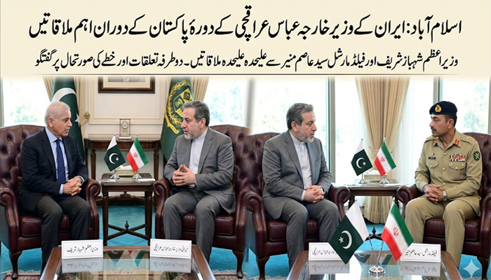 اسلام آباد: ایران کے وزیر خارجہ عباس عراقچی (Abbas Araqchi) نے اپنے دورۂ پاکستان کے دوران وزیراعظم شہباز شریف اور فیلڈ مارشل سید عاصم منیر سے علیحدہ علیحدہ ملاقاتیں کیں، جن میں دوطرفہ تعلقات اور خطے کی صورتحال پر تفصیلی بات چیت کی گئی۔