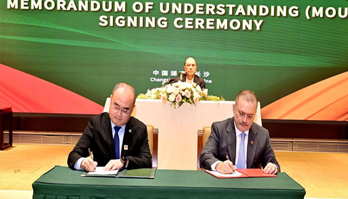 چین کے صوبے ہونان کے شہر چانگشا میں ایم او یوز پر دستخط کی تقریب کا انعقاد کیا گیا ۔صدر آصف علی زرداری نے تقریب میں شرکت کی ۔ سمندری پانی قابلِ استعمال بنانے، زرعی ٹیکنالوجی اور چائے کے شعبے میں تعاون کےسمجھوتوں پر دستخط کیے گئے ۔